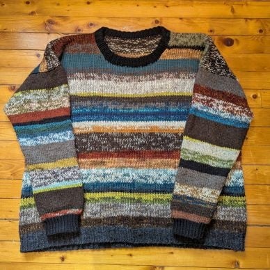 Une fois qu'on a identifié ce qu'on a envie d'utiliser, il est judicieux de s'aider d'un patron pour éviter les casse-têtes. Il existe plein de modèles en vente sur Ravelry qui ont été créés spécialement pour utiliser des restes. Mais petite astuce ici : n'importe quel patron peut fonctionner. Il faut simplement garder à l'esprit qu'un patron demandant un échantillon plus gros (14-18 mailles = 10 cm) offrira plus d'options pour utiliser vos restes qu'un patron qui préconise un échantillon de 20 mailles et moins. Lorsqu'on tricote avec des aiguilles plus grosses, on peut doubler ou tripler un fil qui serait normalement trop petit. On a donc accès à une plus grande sélection ! Les projets en jacquard, en mosaïque et en rayures donnent aussi de belles occasions pour se débarrasser de petites quantités de fils. Et si malgré tout vous avez besoin de voir de vos propres yeux des exemples de projets en version "scrappy", YouTube et Pinterest regorgent d'inspiration pour vous.