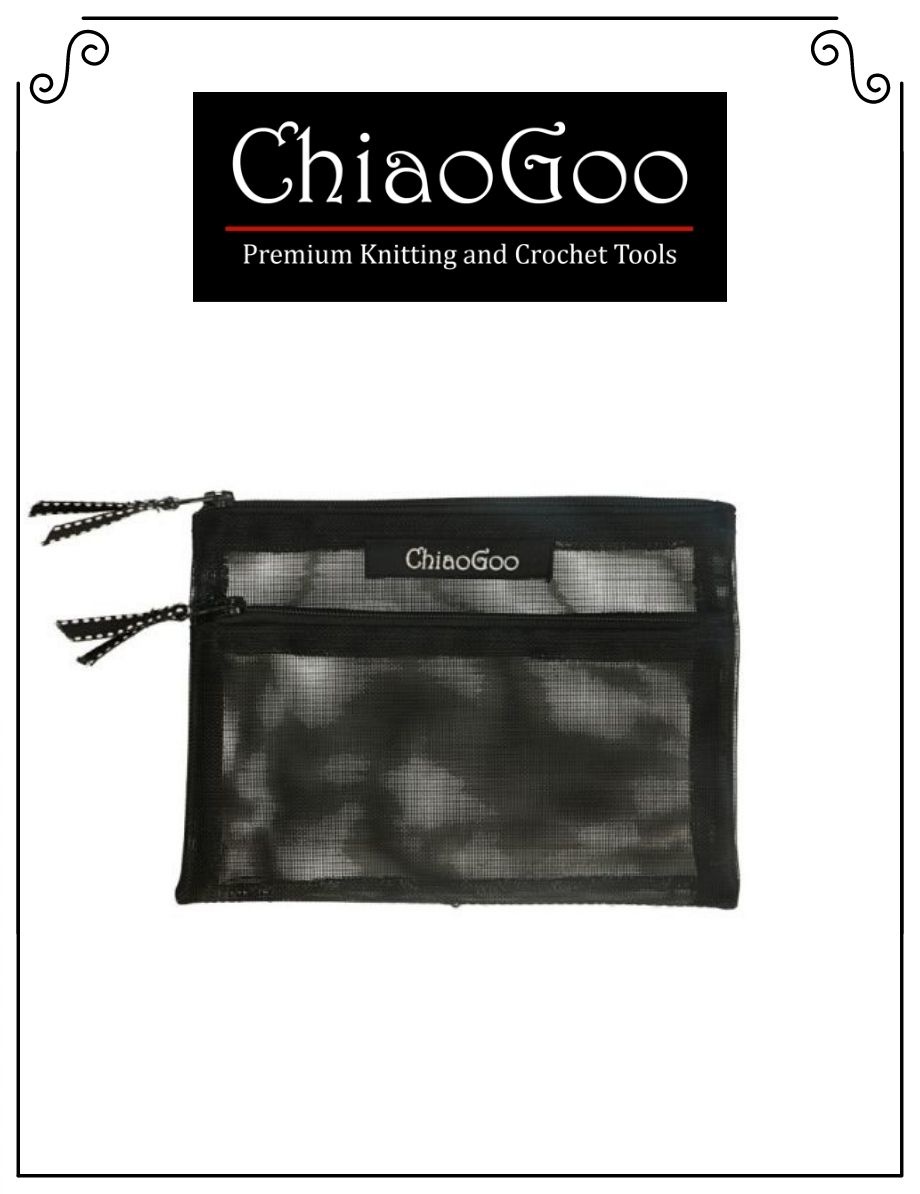Vous êtes tanné de conserver vos cables d'aiguilles interchangeables dans les petits sacs de plastique fournis dans votre kit Chiaogoo? Ceci est la solution! Cette jolie pochette a deux compartiments pour vous permettre de ranger vos cables par grosseur ou vos différents accessoires. En plus, sa dimension la rend vraiment parfaite pour l'insérer au centre de votre kit Chiaogoo.
