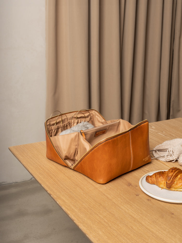 De format compact au design épuré, le sac Project 9 de Re:Designed est tout désigné pour garder vos projets de tricot et crochet en sécurité. Le sac est magnifique vu de l'extérieur mais le véritable spectacle se trouve à l'intérieur! Un fois ouvert et déployé, on peut véritablement voir tout l'espace de rangement disponible dans ce petit sac.